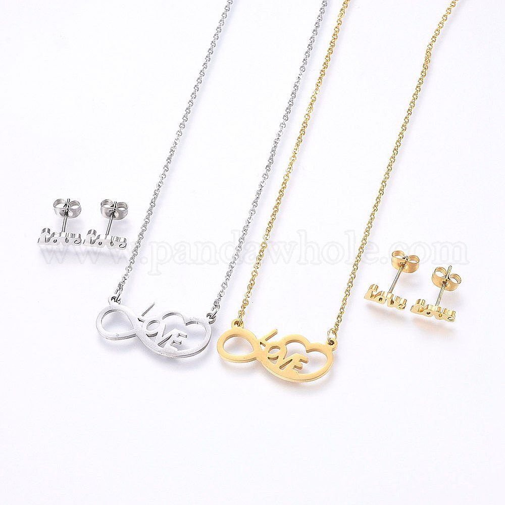304 нержавеющей стали ювелирных изделий, серьги и подвесные ожерелья, Бесконечность со словом любовь