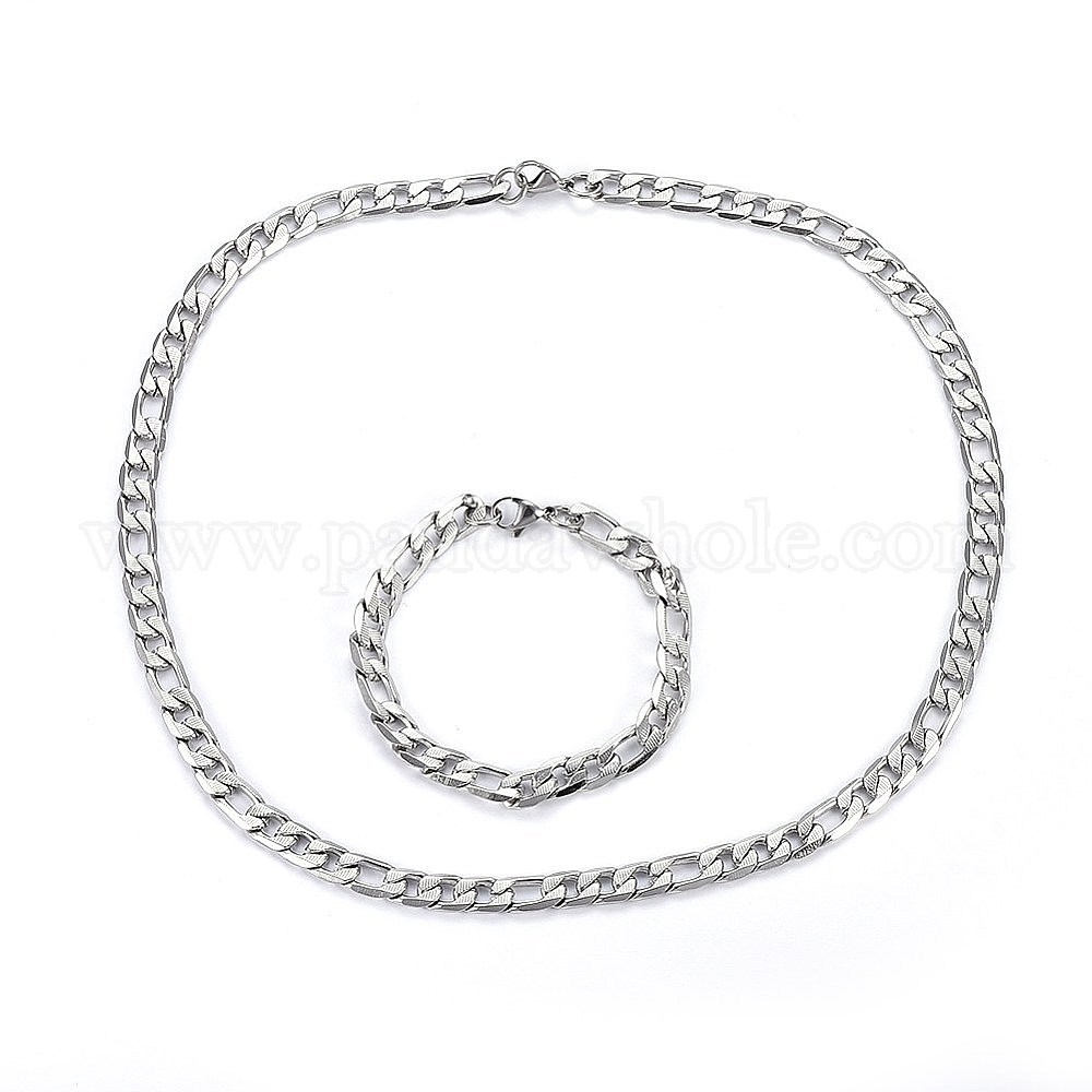 • Нержавеющая Сталь Цвет Комплекты ювелирных изделий из нержавеющей стали, устойчивые к потускнению, колье и браслеты с цепями фигаро, цвет нержавеющей стали, колье: 304 дюйм (23.6 см), браслеты: 60 дюйм (8-5/8 см)