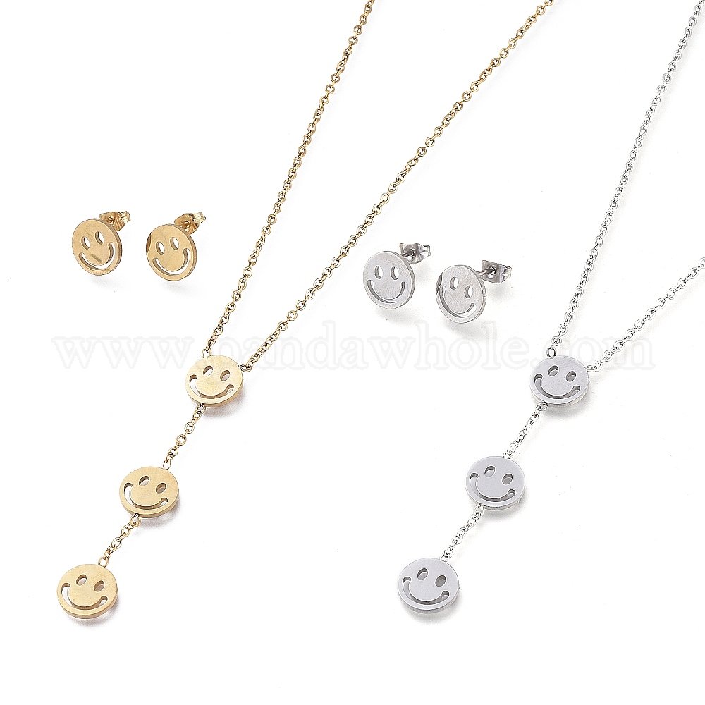 Улыбающееся лицо 304 комплекты украшений из нержавеющей стали, цепочки кулон ожерелья и серьги, с ушными гайками и застежками в виде когтей лобстера