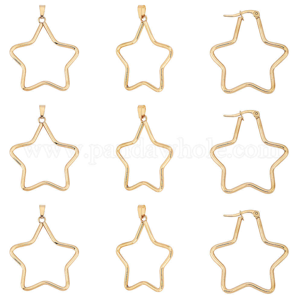 звезда 304 комплекты украшений из нержавеющей стали: серьги-кольца: 39x35x2 мм, контактный: 0.6x1 мм; кулон: 38x34x2 мм, отверстие : 6x3 мм, 8 комплекты;