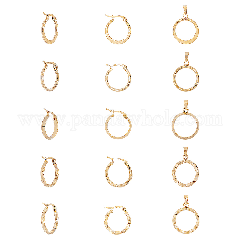 кольцо 304 комплекты украшений из нержавеющей стали: серьги-кольца: 19x20.5x2 мм, контактный: 0.6x1 мм; кулон: 23x19x2 мм, отверстие : 6x3 мм, 2 комплекты;