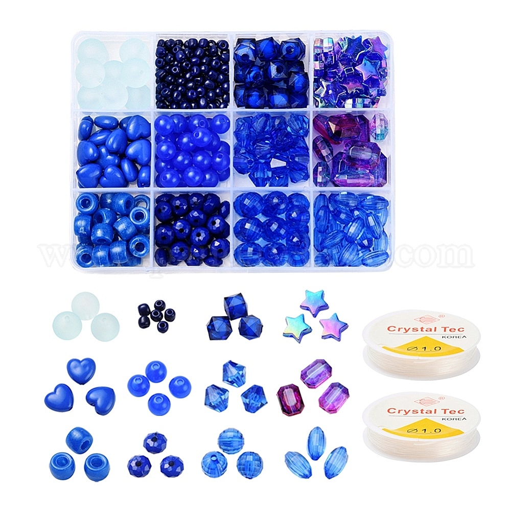 Наборы для изготовления ювелирных изделий из браслетов синей серии diy, 232 пластиковые и акриловые бусины в форме сердца и геометрических фигур., стеклянный бисер и эластичная стрейч-нить (0288PW)