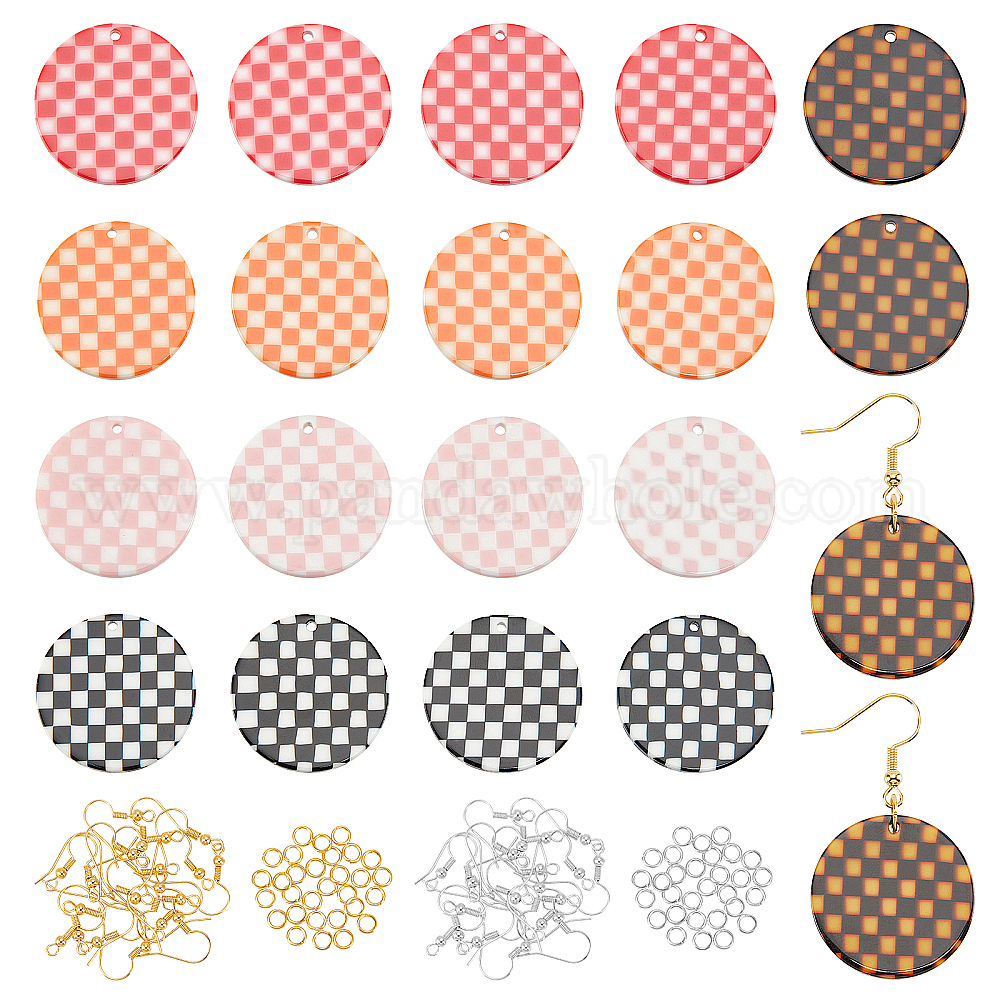 Наборы для изготовления сережек diy, 20 шт. Плоские круглые подвески из ацетата (смолы) целлюлозы, железные открытые прыжковые кольца и крючки для сережек