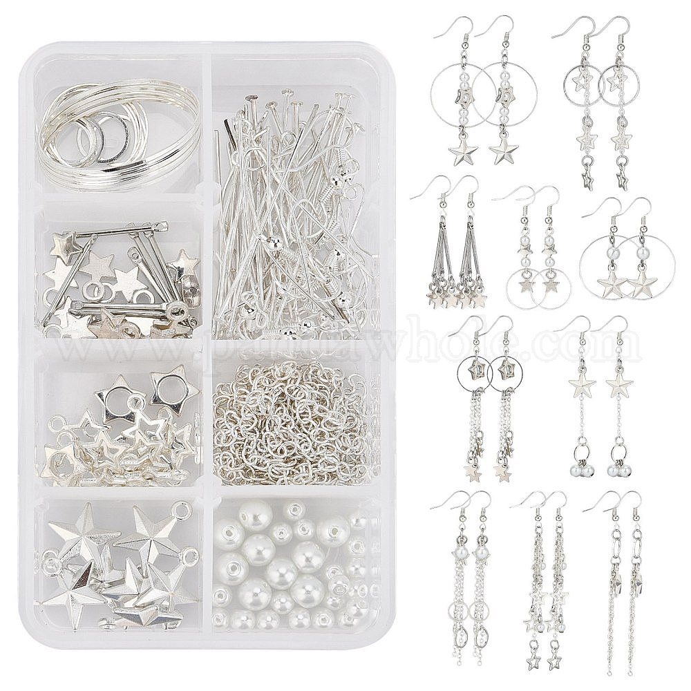 Наборы для изготовления сережек diy, 38 шт. Звезда / круглая стеклянная и пластиковая бусина, 48 шт. Подвески из звездчатого сплава, железные звенья, медные выводы и кабельные цепи
