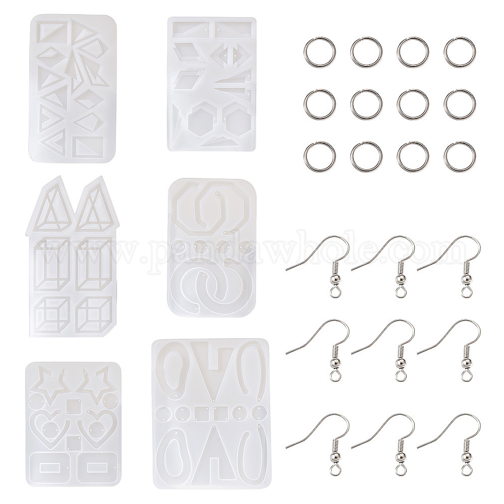 6шт. серьги в форме для литья из силиконовой смолы, с 100 шт. латунными крючками для серег и 304 пружинными кольцами из нержавеющей стали