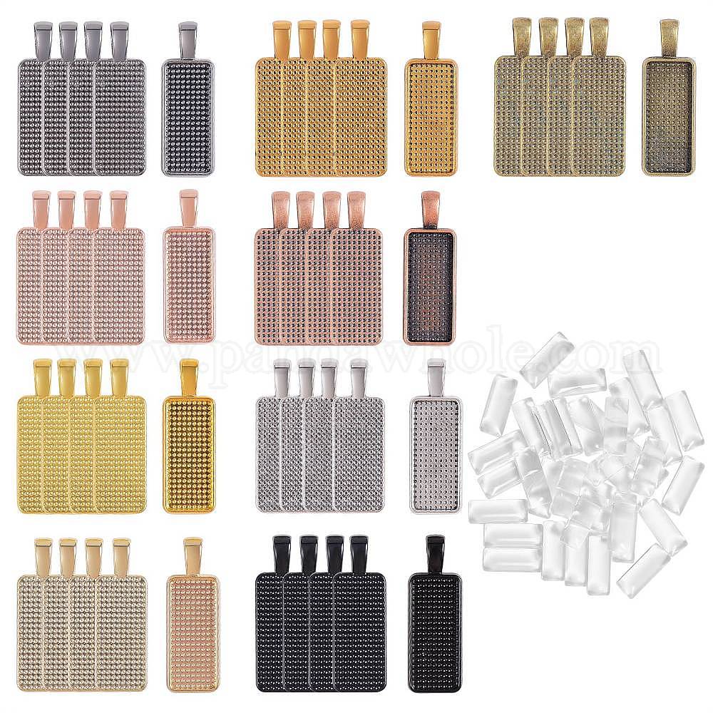 36 шт 9 цвета сплава подвеска кабошон настройки, с 36 прозрачными прямоугольными стеклянными кабошонами, для комплектов для изготовления кулонов своими руками