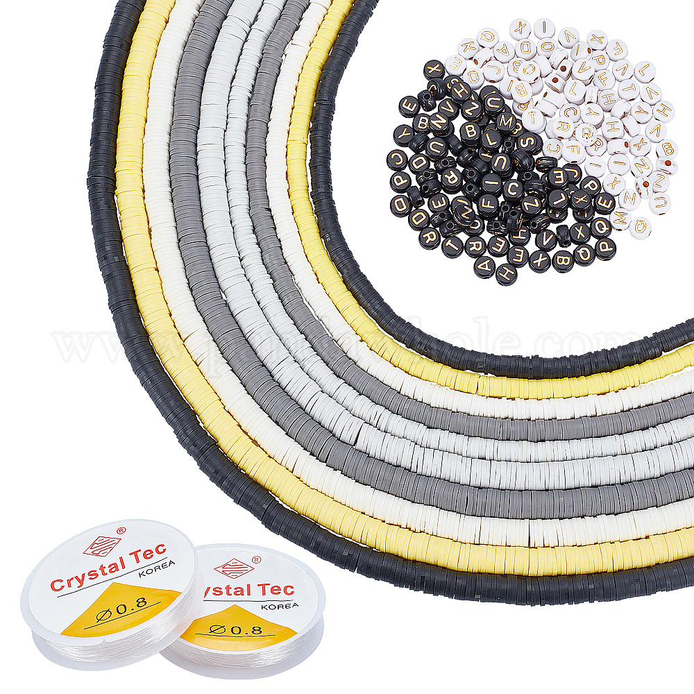 Плоские круглые бусины из глины ручной работы полимерные, диск хейши бусины и акриловые бусины, с эластичной стрейч-нитью