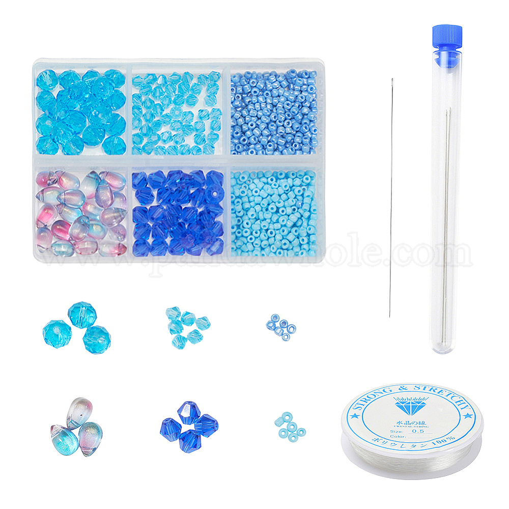 Наборы для изготовления ювелирных изделий серии diy blue, 620 шт. Стеклянные круглые и круглые бусины., 80 биконусы из искусственного австрийского хрусталя, 20 стеклянные подвески в форме капли, пробирка, иглы, Эластичная кристальная нить