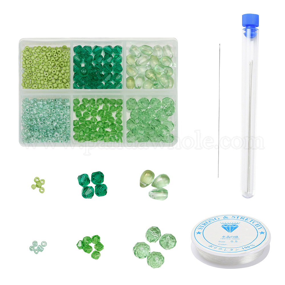 Наборы для изготовления ювелирных изделий из зеленой серии своими руками, 620 шт. Стеклянные круглые и круглые бусины., 80 биконусы из искусственного австрийского хрусталя, 20 стеклянные подвески в форме капли, пробирка, иглы, Эластичная кристальная нить