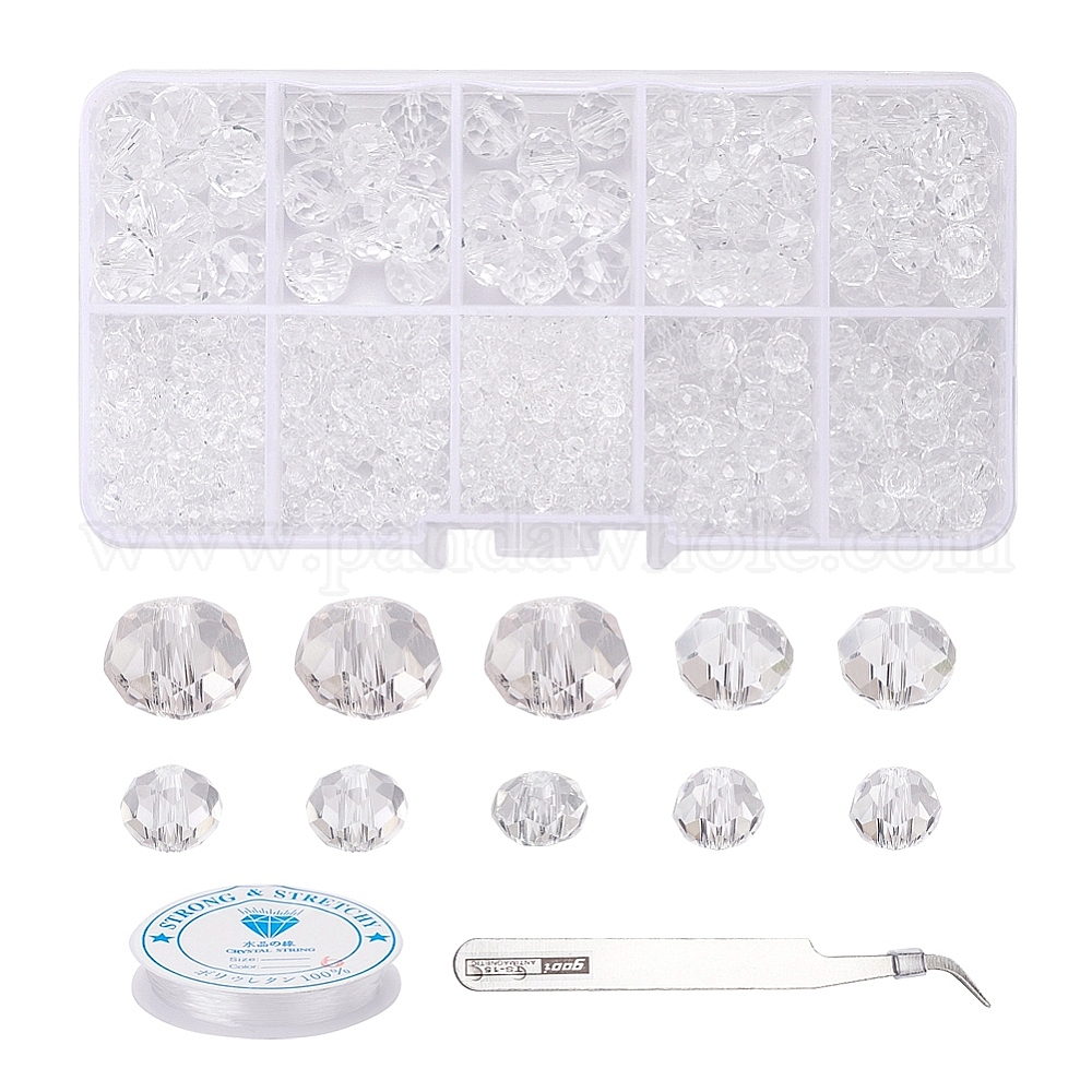 710 прозрачные граненые стеклянные бусины рондель., 410 остроконечный пинцет из нержавеющей стали и эластичная хрустальная нить, для изготовления украшений своими руками