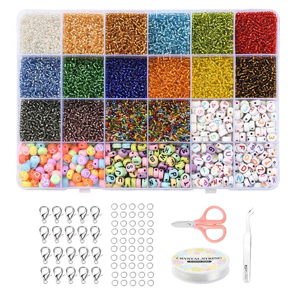 Ювелирные изделия, в том числе 16 цветные круглые стеклянные бусины с круглым отверстием и серебряной подкладкой, плоские круглые бусины акриловые, сплав цинка застежками, Железные соединительные колечки, Эластичная кристальная нить, пинцет и ножницы