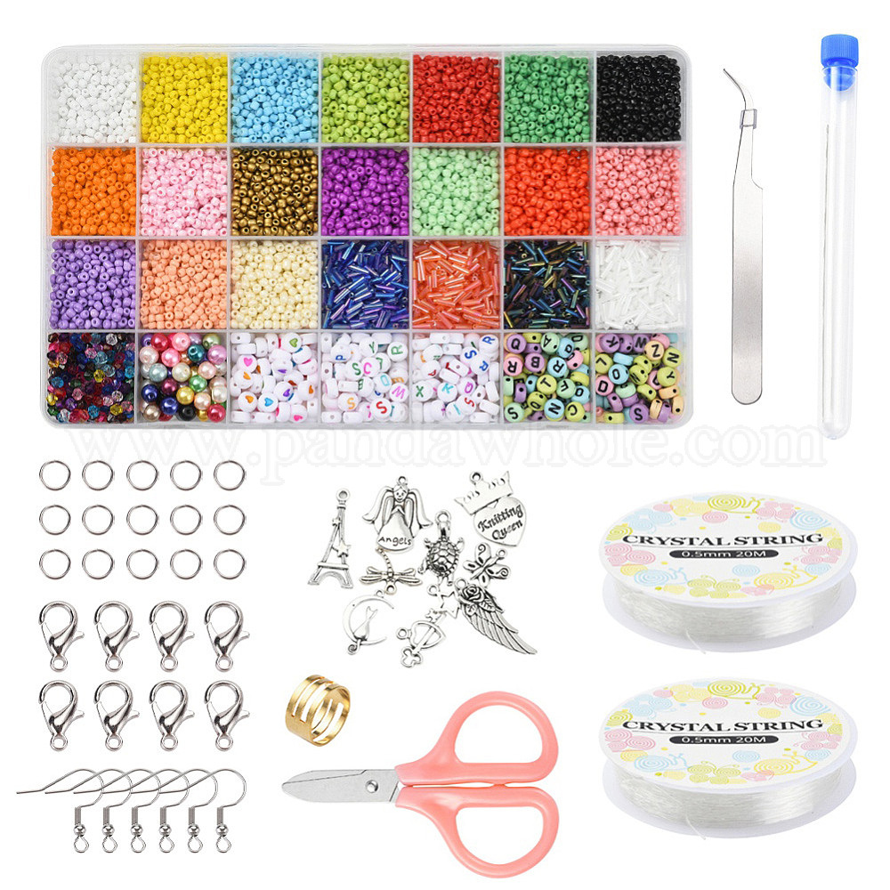 Наборы для изготовления ювелирных изделий своими руками, в том числе 8/0 круглые стеклянные бусины, плоские круглые бусины акриловые, Сплавочные подвески тибетского стиля, Эластичная кристальная нить, пробирка, пинцет, ножницы и иглы