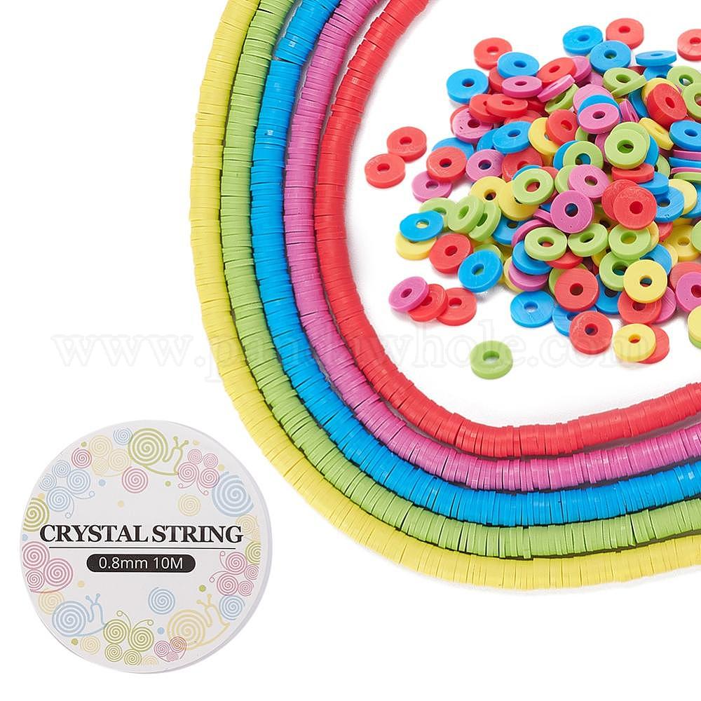 • (52) Непрозрачная лаванда Наборы для изготовления браслетов своими руками, с диском, бусами ручной работы из полимерной глины и эластичной хрустальной нитью, разноцветные, 6x1 мм, отверстие : 2 мм, около 380~400 шт / нитка, 17.7 дюйм, 5 цветов, 1 прядь / цвет, 5 нитей