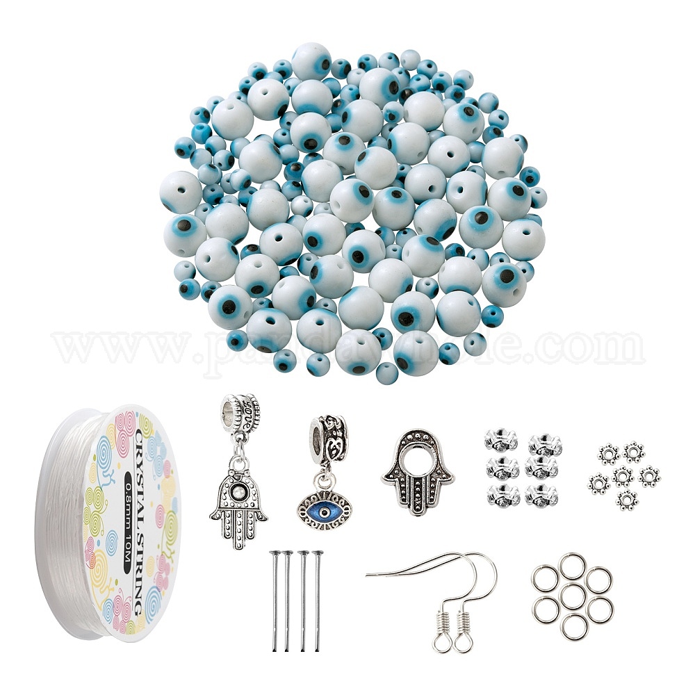 Наборы для изготовления ювелирных изделий своими руками, в том числе бусины от сглаза лэмпворк, бусины из сплава и латуни со стразами, сплав европейская рамка для бусин и подвески с подвесками, крючки для железных сережек, кольца и булавки, эластичная нить (029P8Q)