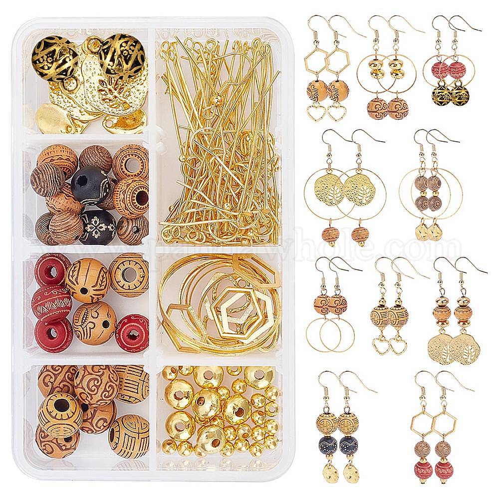 Набор для самостоятельного изготовления сережек из деревянных бусин, включая деревянные и акриловые бусины, подвески и ссылки из сплава, железа бисера, латунные соединительные кольца, прыгуны, крючки и булавки для серег