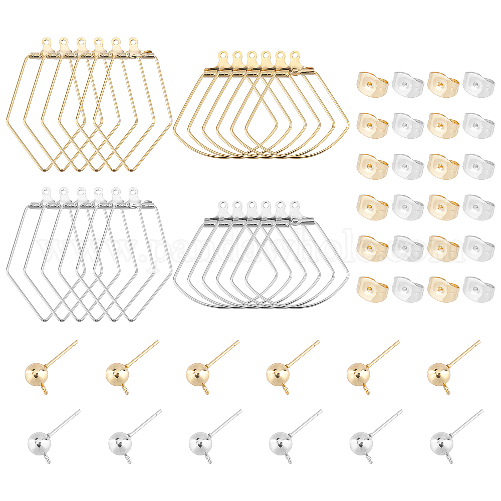 ромб 304 серьги-кольца из нержавеющей стали: около 35x22x1.8 мм (21 датчик), отверстие : 1 мм, Внутренние размеры: 28x21 mm, штифты : 0.7 мм, 2 цветов, 6 шт / цвет, 12 шт,