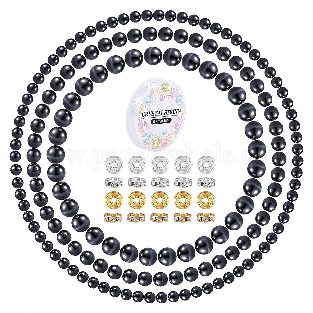 175шт немагнитные синтетические гематитовые круглые бусины для изготовления ювелирных изделий своими руками, с проставками из железа со стразами, Эластичная кристальная нить (02A8RY)