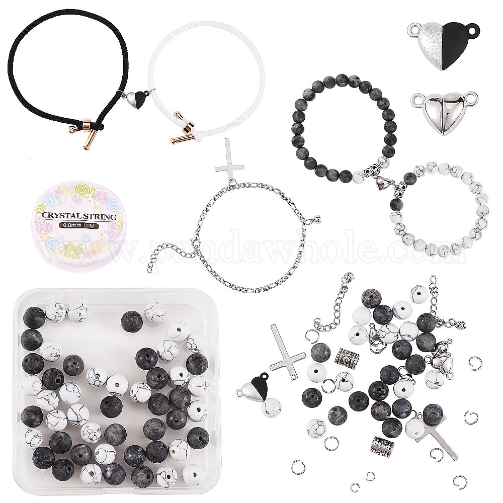 Наборы для изготовления браслетов с магнитной застежкой, 304 браслет из нержавеющей стали и хлопкового шнура, бусины из синтетических и натуральных драгоценных камней, сплав и латунь и 304 фурнитура и шарм из нержавеющей стали, эластичная нить
