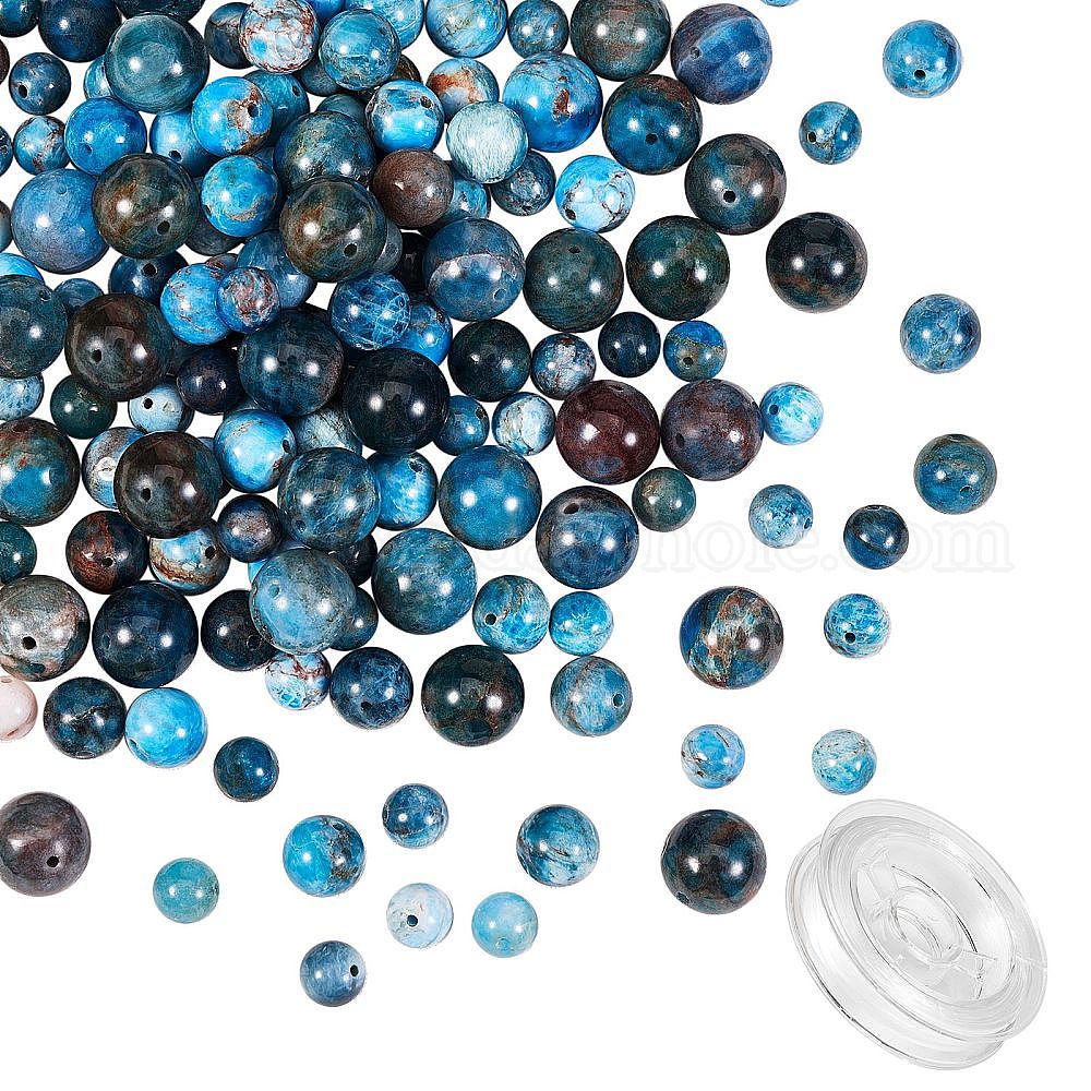Круглые бусины из натурального апатита класса AB для набора для изготовления браслетов «сделай сам», с 1 рулонной эластичной нитью
