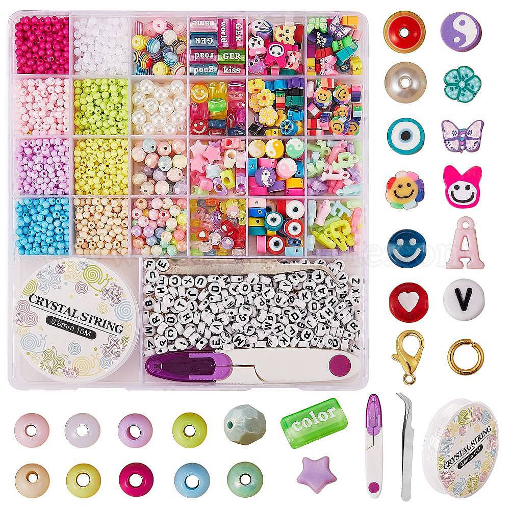 Комплект для изготовления ювелирных изделий из бисера своими руками, включая полимерную глину и абс-пластик, имитирующий жемчуг, акриловые и смоляные бусины, акриловые подвески, Сплав застежками, железа прыжок кольцо, эластичная нить, резать ножницами, выщипывать пинцетом