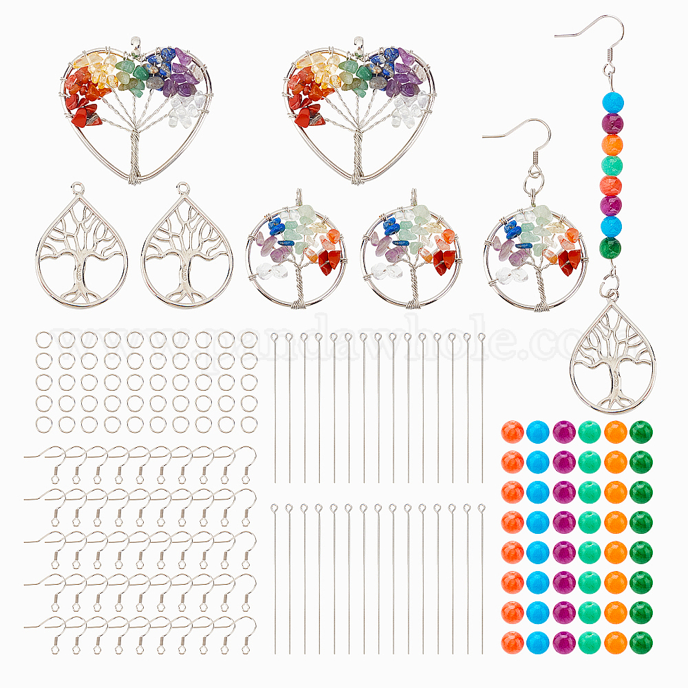 Набор для самостоятельного изготовления сережек-капель из камня «Дерево жизни», включая натуральные и синтетические смешанные камни и подвески из латуни, натуральный машан нефритовая бусина, 304 крючки и булавки для сережек из нержавеющей стали, железа прыжок кольцо