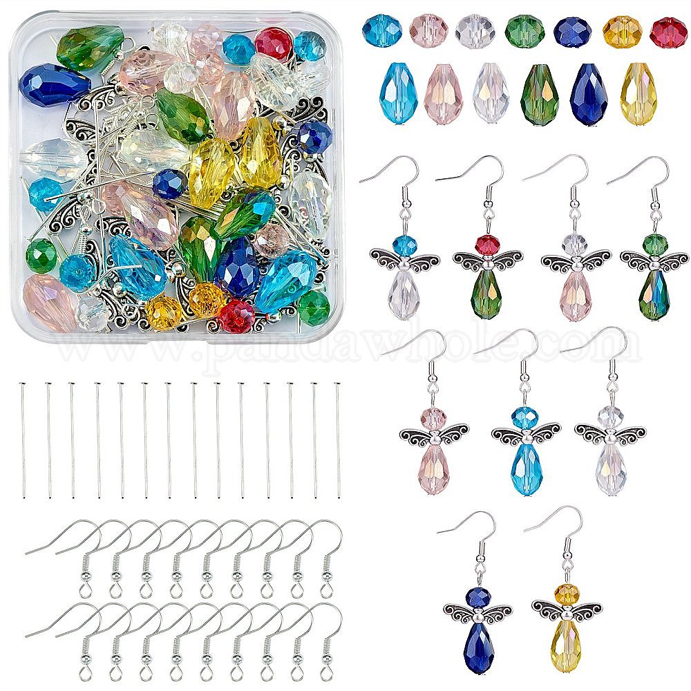 Набор для изготовления сережек из граненых бусин своими руками, в том числе сплав и стеклянные бусины, железные крючки и булавки для серег (02BESE)