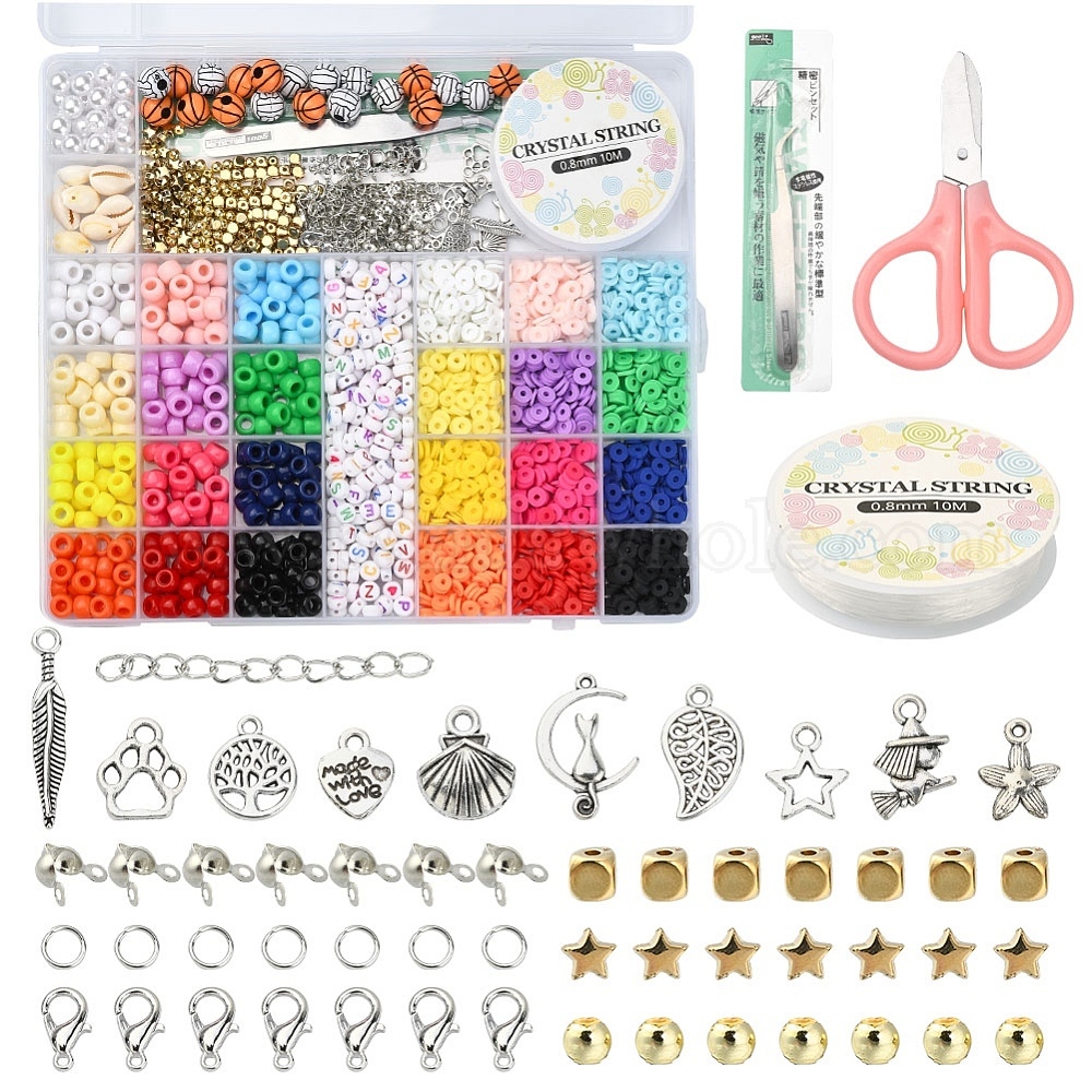 Набор для изготовления украшений из хейши и бочкообразных бусин своими руками, включая смолу, акрил, полимерную глину, пластик и бусины из ракушек, Шарм и застежка из сплава, железная фурнитура, эластичная нить, ножницы и пинцет