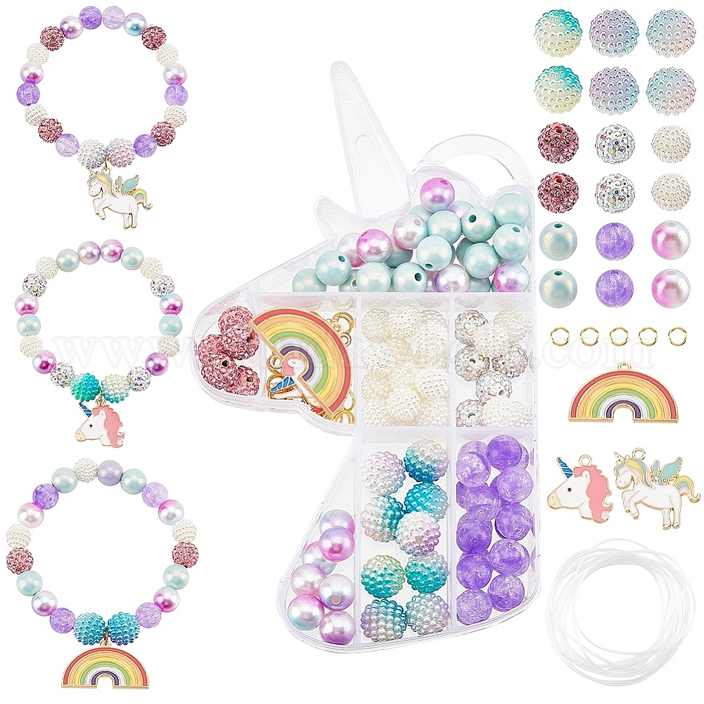 Наборы для изготовления браслетов Unicon своими руками, включая бусины из акриловой и полимерной глины со стразами, Подвески из эмали и сплава, Перейти латунные, эластичная струна