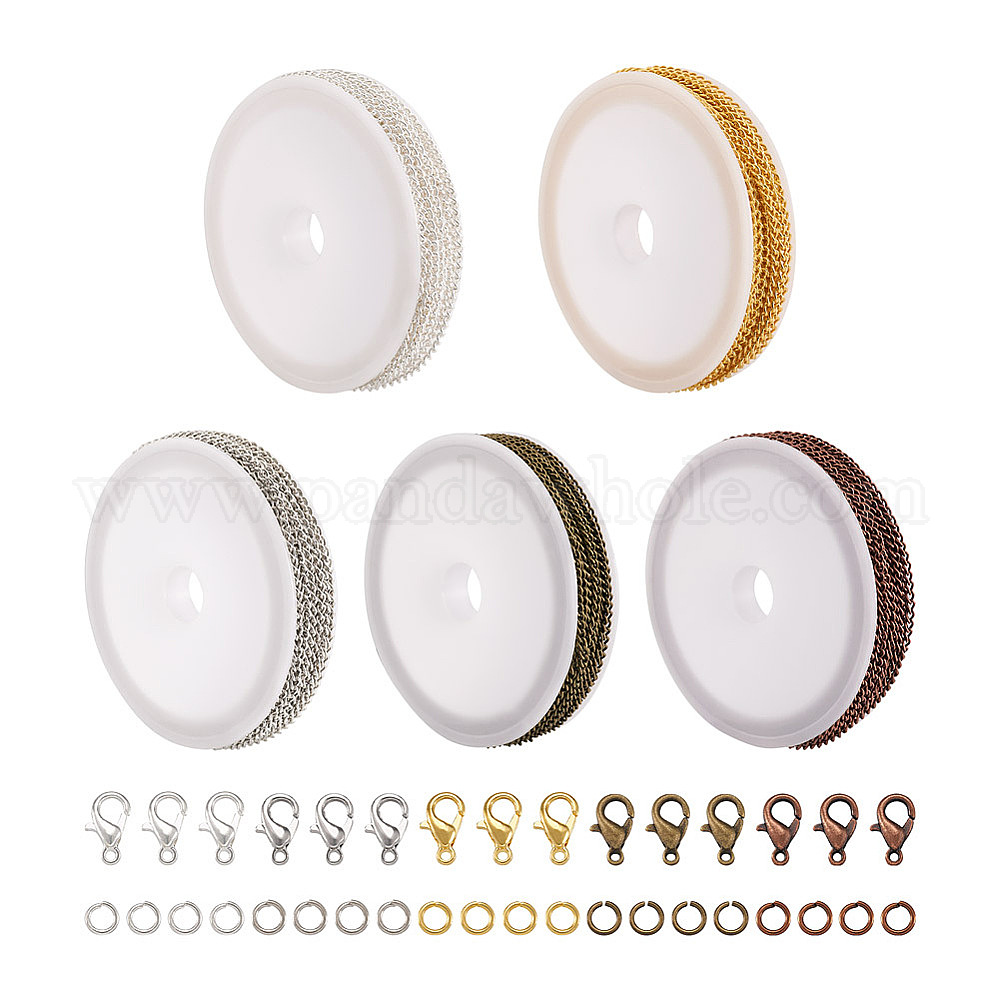 Набор для изготовления ожерелья из цепочки своими руками, включая 5 рулон 5 цветные железные бордюрные цепи и соединительные кольца, Карабин-лобстер из цинкового сплава (02CFJY)