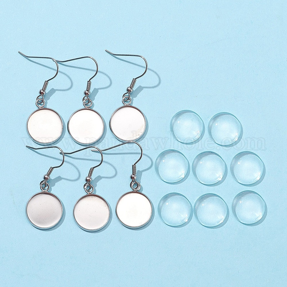 Набор для изготовления плоских круглых висячих сережек своими руками, в том числе 304 крючки для серег из нержавеющей стали, Прозрачные стеклянные кабошоны