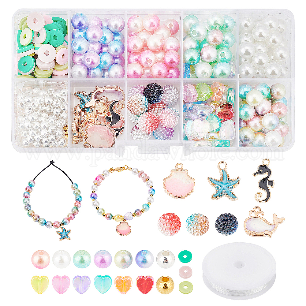 Наборы для изготовления браслетов на тему океана своими руками для детей, в том числе акриловый жемчуг и сердце и пластиковые круглые бусины и бусины из полимерной глины, подвески из сплава морских звезд, морских коньков, ракушек и дельфинов