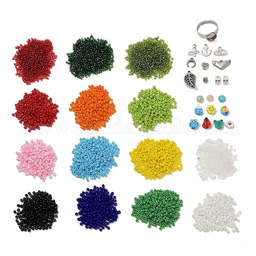 Наборы для изготовления колец из смешанных камней и шармов своими руками, включая 304 кольца из нержавеющей стали, стеклянные бусины и бусины из полимерной глины, бабочки и слон подвески из нержавеющей стали и сплава, кабошоны из камня