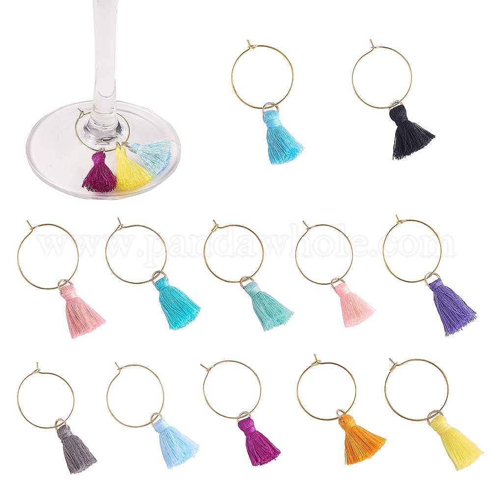 Наборы для изготовления шармов для бокалов своими руками, в том числе подвесные украшения из поликоттона (полиэфирного хлопка) с кисточками, латунные бокалы