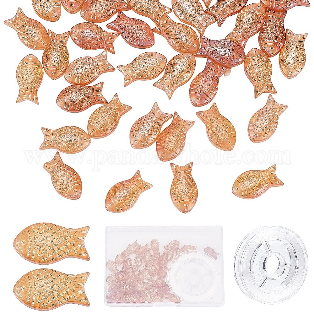 гальванические стеклянные рыбьи бусины: около 15x8x5мм, отверстие : 1 мм, 50 шт;