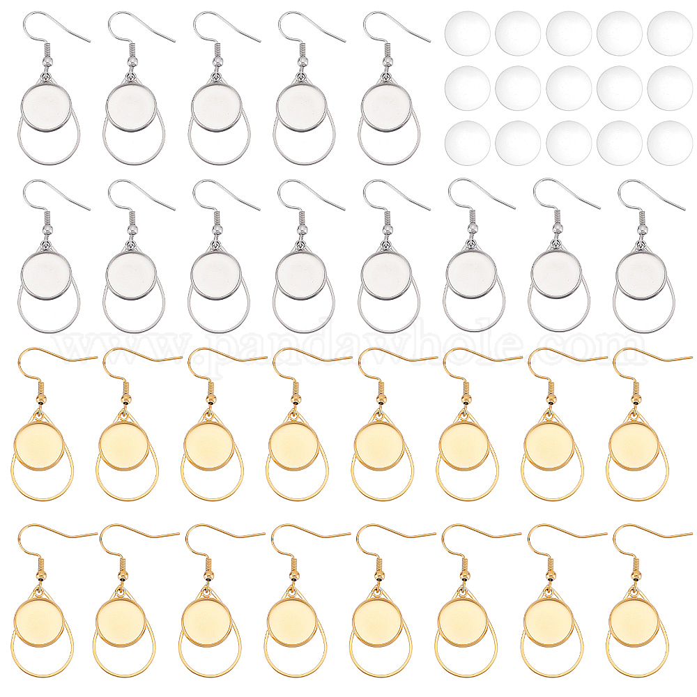 Набор для самостоятельного изготовления заготовок для сублимационной серьги, в том числе 304 крючки для серег из нержавеющей стали с плоскими круглыми кабошонами, Кабошоны из стекла