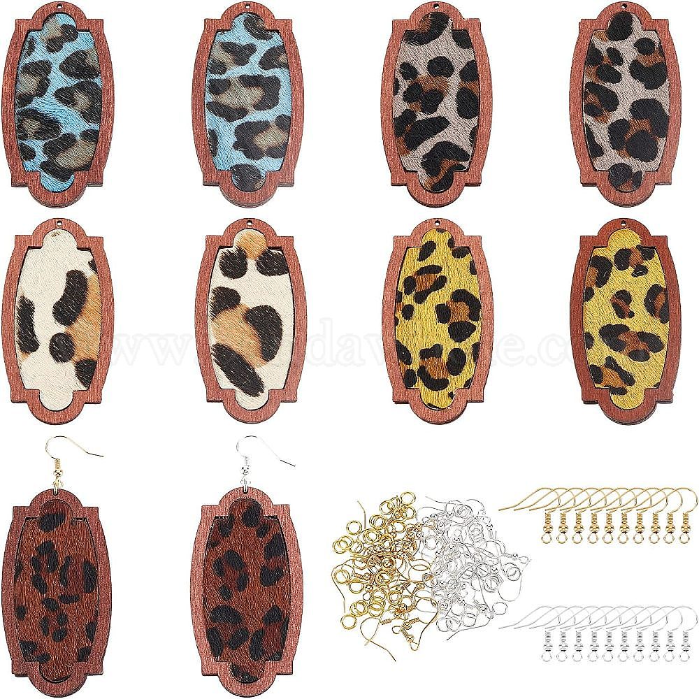 Набор для самостоятельного изготовления прямоугольных сережек-подвесок с леопардовым принтом, в том числе подвески из воловьей кожи с деревом, Латунные крючки для сережек