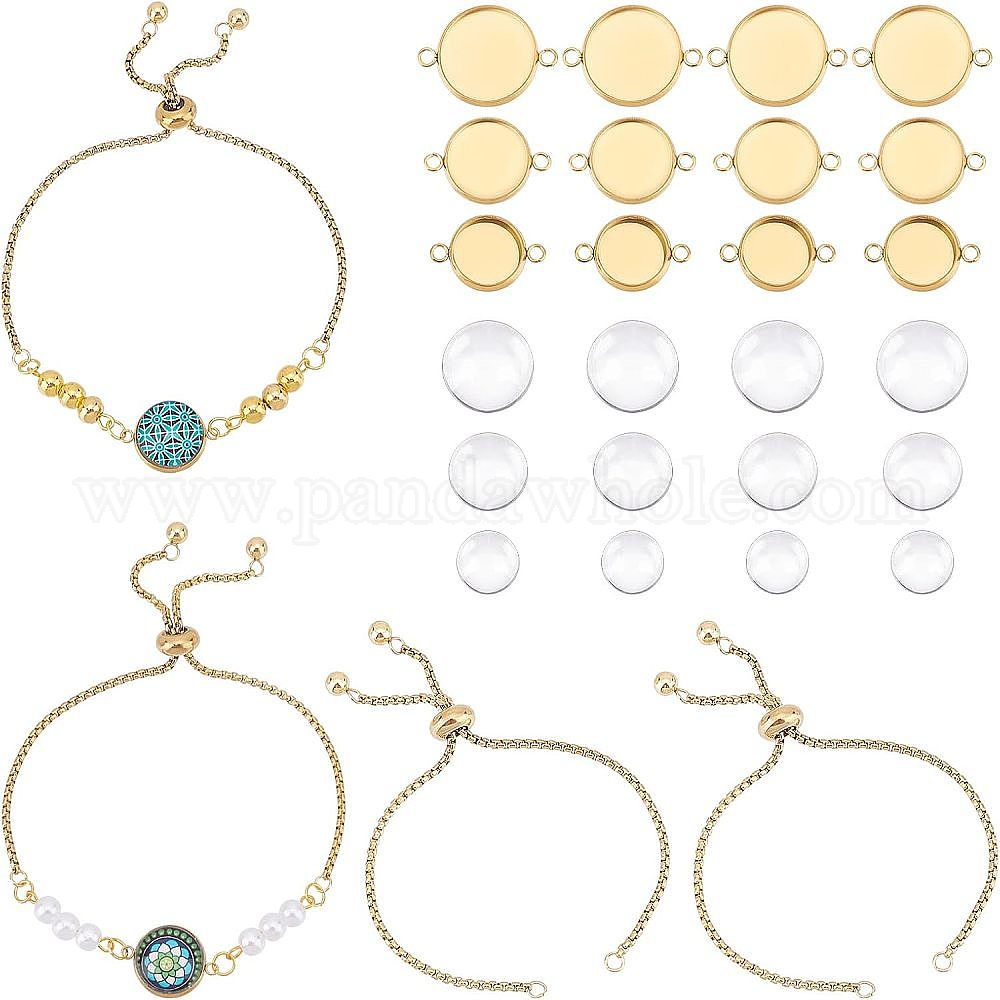 Наборы для изготовления браслетов своими руками, в том числе 304 изготовление браслета-слайдера из нержавеющей стали, закрепка плоского круглого кабошона, Кабошоны из стекла