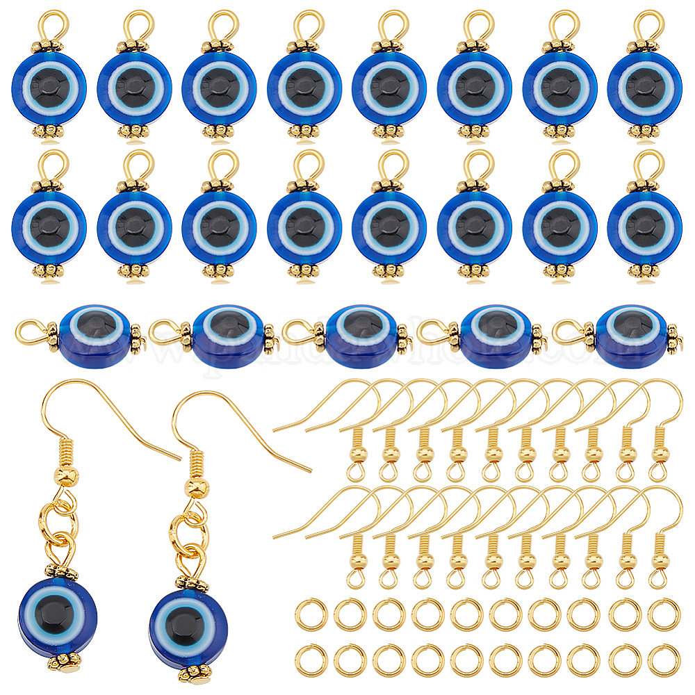Набор для самостоятельного изготовления синих сережек от сглаза, в том числе латунные крючки для сережек и прыгающие кольца, подвески из железных смоляных бусин