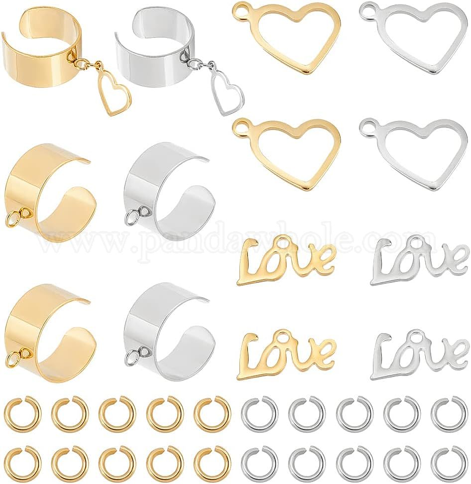 • Золотой & Цвет Нержавеющей Стали Набор для самостоятельного изготовления кольца-манжеты с подвеской в виде любви, включая кольцевое основание петли из нержавеющей стали, 304 подвески и прыгающие кольца из нержавеющей стали, золотые и нержавеющая сталь цвет, 36 шт / коробка