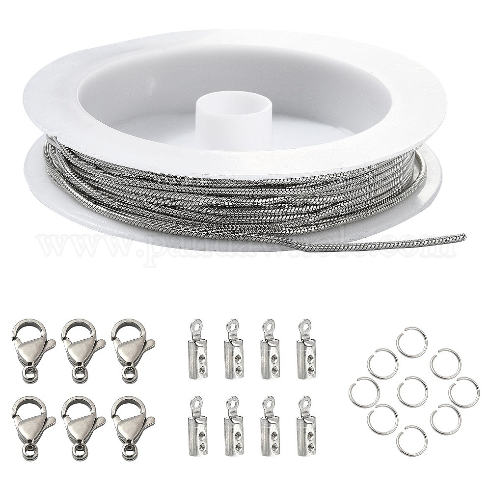 • Нержавеющая Сталь Цвет Набор для изготовления ожерелья с круглой змеиной цепочкой своими руками, включая 304 цепи из нержавеющей стали, застежки, соединительные кольца и заглушки, цвет нержавеющей стали, цепь: 5 м / комплект