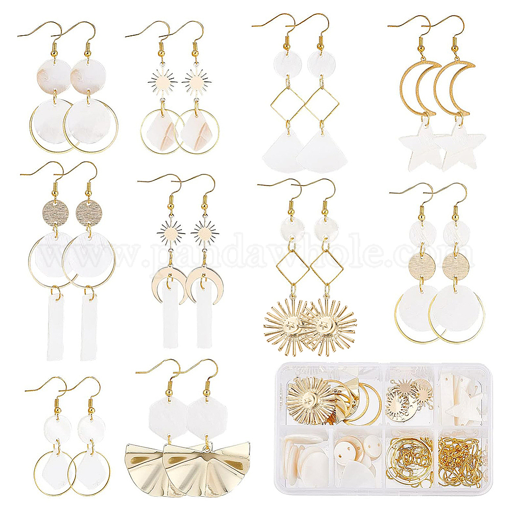 Набор для изготовления сережек с подвесками в форме геометрии своими руками, включая солнце, луну, веер, шестигранник и ромб из натуральной оболочки, латунь, железо и сплав, соединители и подвески, Латунные крючки для сережек