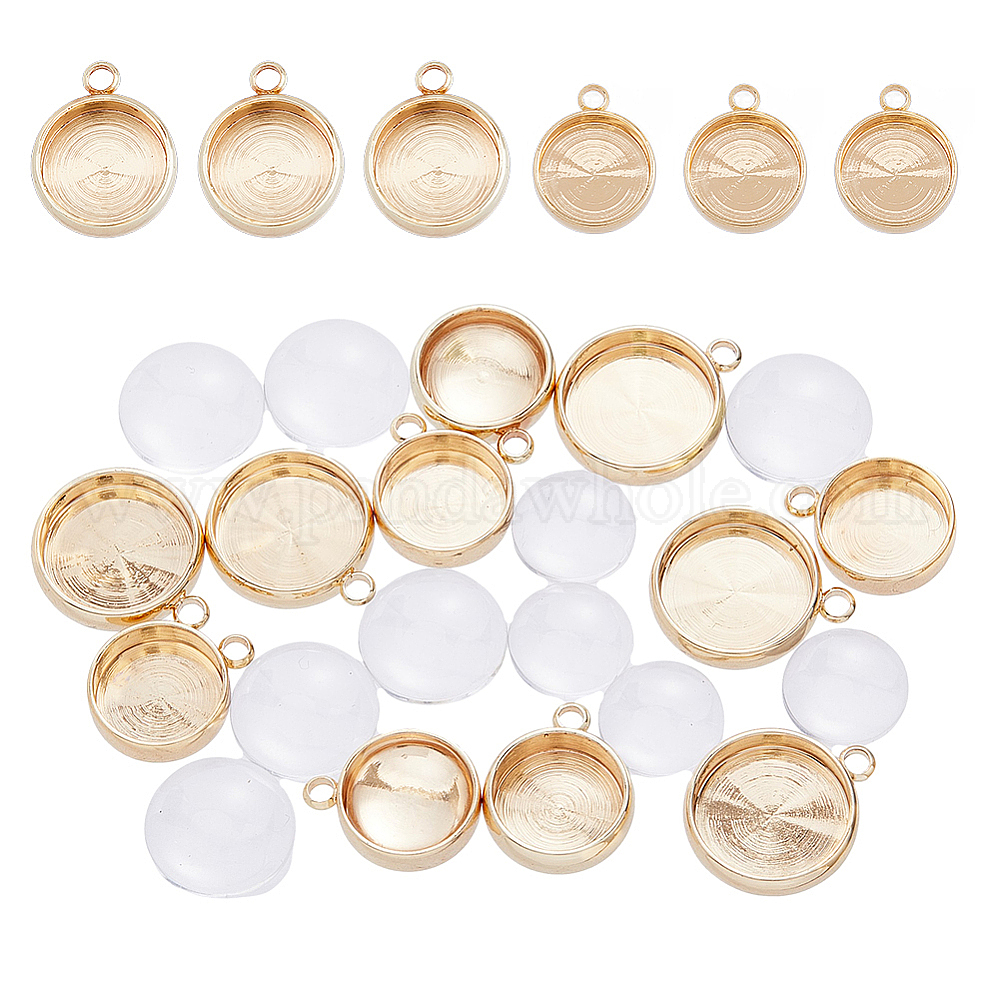Наборы для самостоятельного изготовления подвесного купола, включая латунные плоские круглые подвески с кабошоном, Кабошоны из стекла