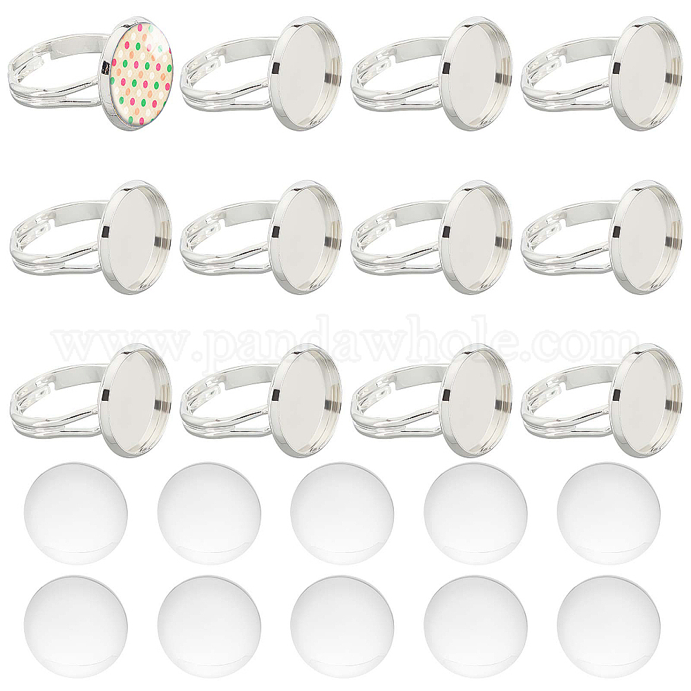 Наборы для изготовления колец для пальцев своими руками, включая регулируемые настройки латунного кольца, прозрачный полукруглый стеклянные кабошоны