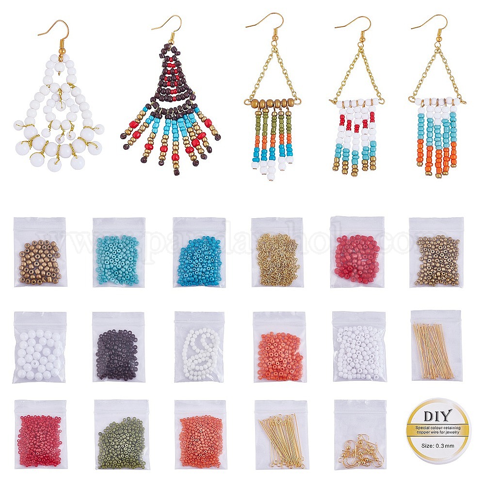 Набор для изготовления больших сережек с кисточками своими руками, в том числе железные кабельные цепи, пластиковые и стеклянные, акриловые и стеклянные круглые бусины, Латунные крючки для сережек, Медная проволока (02EYGR)