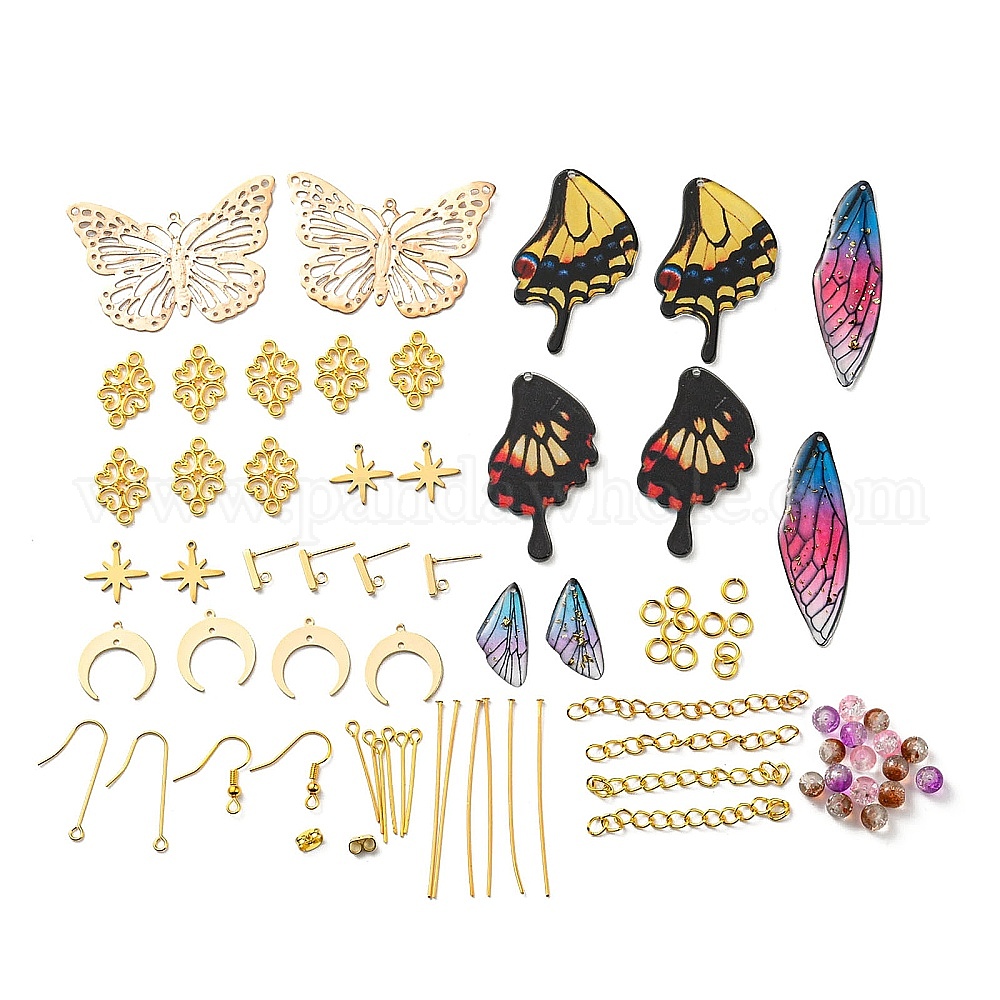 Набор для изготовления сережек в виде бабочек своими руками, включая железное крыло, смолу и акриловый кулон, 304 фурнитура для сережек и подвеска из нержавеющей стали, крючки для серег из латуни и 316 хирургической нержавеющей стали, Стеклянные бусины