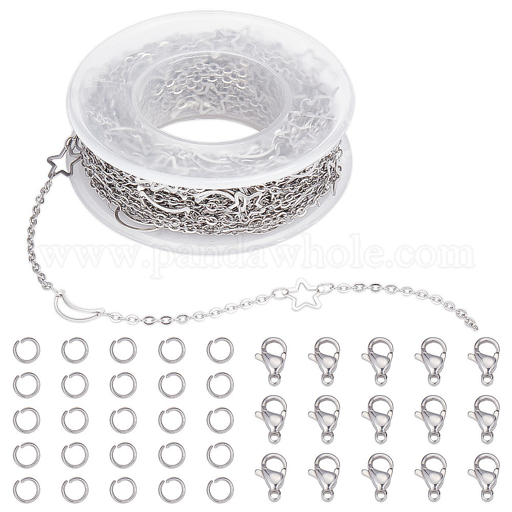 • Нержавеющая Сталь Цвет Наборы для самостоятельного изготовления цепочек-ожерельев, включая 304 кабельные цепи из нержавеющей стали, застежки-карабины и открытые соединительные кольца, цвет нержавеющей стали