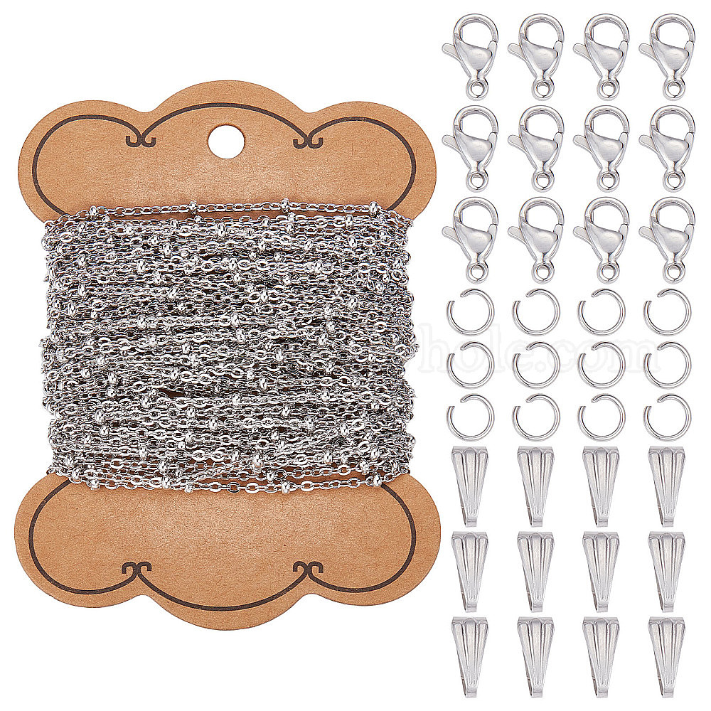 Наборы для самостоятельного изготовления цепочек-ожерельев, включая 304 кабельные цепи из нержавеющей стали, застежки-карабины, открытые соединительные кольца и защелки на поручнях