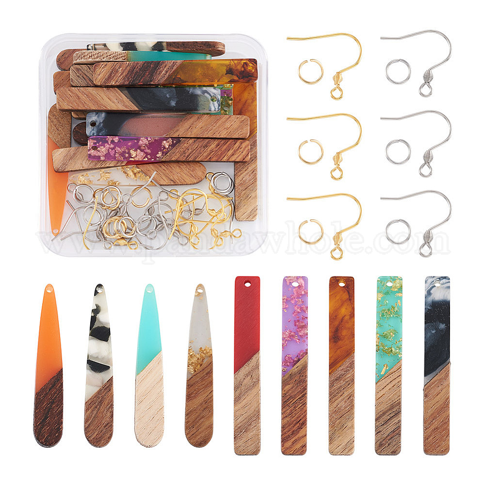 Набор для изготовления прямоугольных и каплевидных сережек своими руками, в том числе подвески из смолы и ореха, 304 прыгающие кольца из нержавеющей стали и французские крючки для сережек