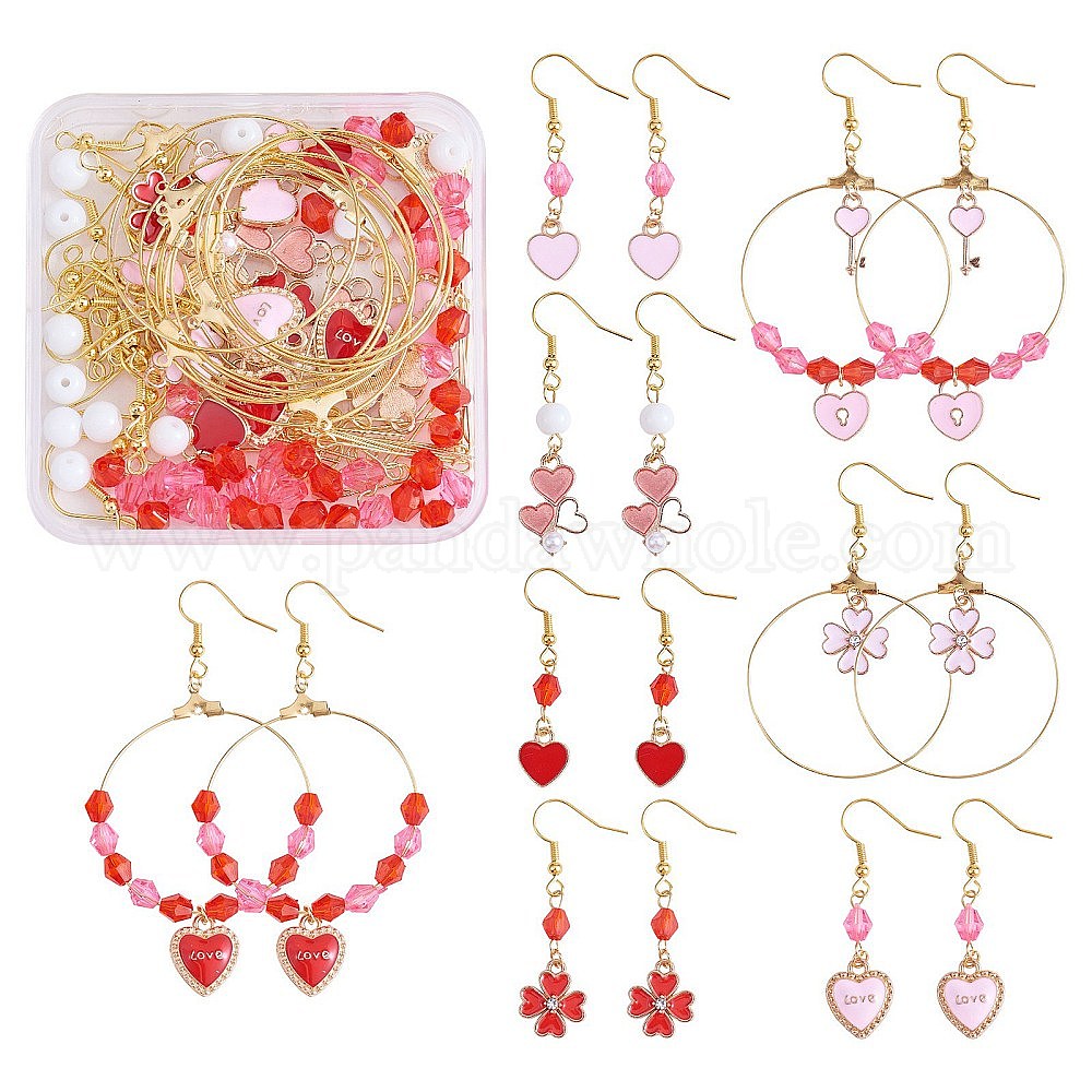 Набор для изготовления сережек на тему Валентинки своими руками, включая сплав сердца и клевера и латунные подвески, Железные крючки для сережек, акриловые и стеклянные бусины