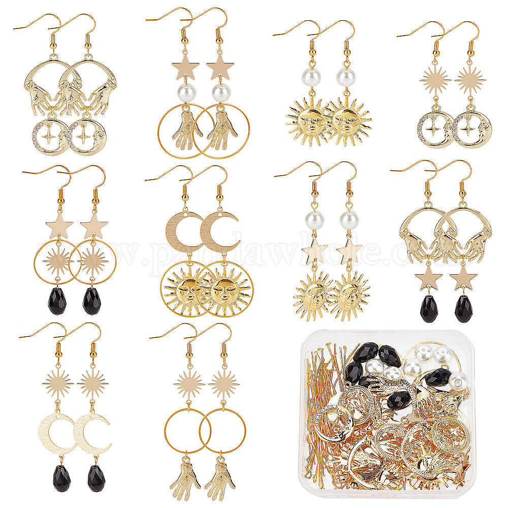 Набор для самостоятельного изготовления сережек «солнце, луна, звезда», включая соединители из латуни, подвески и соединители из латуни и сплава, Стеклянные жемчужные бусины, Латунные крючки для сережек